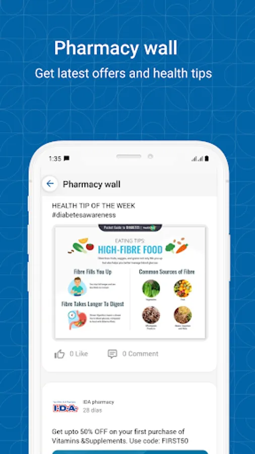 Order medicines Online – Doorstep Delivery Order medicines from the wide variety of products available at our online pharmacy and get them delivered to your doorstep with just few clicks. Shop with Ease Buying medicines made simpler, just upload your prescription and leave the rest to our dedicated pharmacists, the medicines will get delivered to your home. Keep Track of your health profile Record and keep track of your health parameters like Blood Pressure, Pulse rate, Body Temperature, and more on the go! All Health Records at one safe place Save your Lab Test Reports, Prescriptions and Medical Claim documents at one safe place. Simply take a snap from your camera or upload from gallery, and access them whenever needed. Pill Reminder If you are having trouble remembering when to take your meds and confused about which meds to consume, set up a pill reminder through IDA Pharmacy app, it will remind you to take meds when they are due.