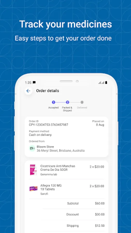 Products based on your health issues You can browse products based on your health issues. Read about health issues, symptoms, and treatment written by our healthcare specialists. Find all about your orders Conveniently track your order status in real time, straight from the palm of your hand! Securely access your order history in “My Account” section.
