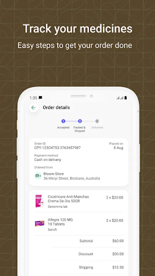 Products based on your health issues You can browse products based on your health issues. Read about health issues, symptoms, and treatment written by our healthcare specialists. Find all about your orders Conveniently track your order status in real time, straight from the palm of your hand! Securely access your order history in “My Account” section.