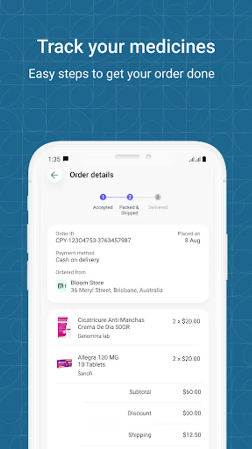 Products based on your health issues You can browse products based on your health issues. Read about health issues, symptoms, and treatment written by our healthcare specialists. Find all about your orders Conveniently track your order status in real time, straight from the palm of your hand! Securely access your order history in “My Account” section.