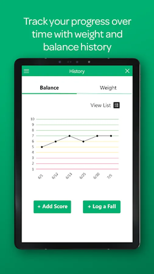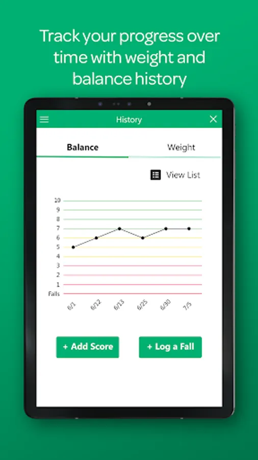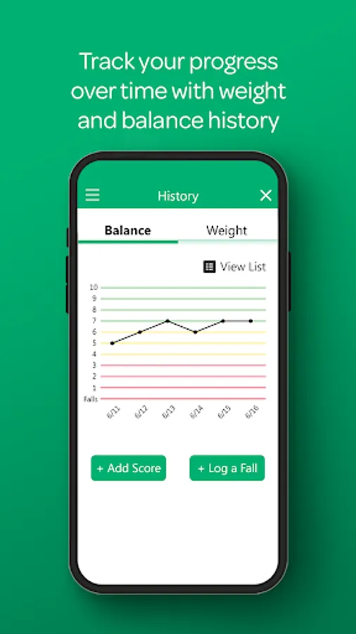 View your balance history and gain insights into your balance over time. The ZIBRIO BalanceCoach® makes it easy to keep an eye on important changes in your balance via the Graph View of your history. The app conveniently imports scores from balance tests done solely with the scale. You can also input your score manually if you checked your balance with another scale or at a clinical setting.
