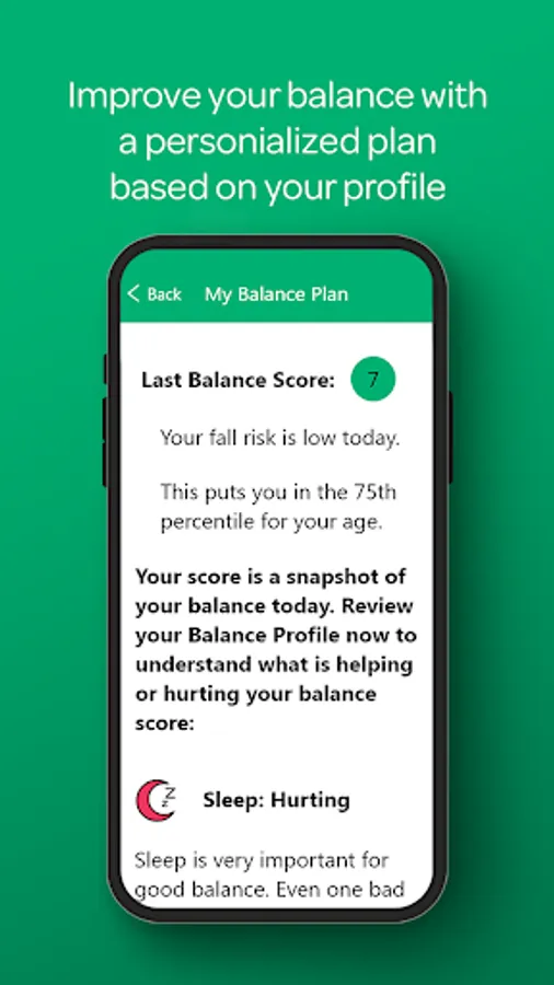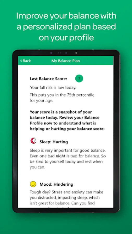 Get balance advice tailored to your balance profile to guide your journey to improving your balance.You can use the app on its own to learn more about how your lifestyle affects your balance, and you can also add your balance measurements from ZIBRIO’s range of Stability Scales (at home or in doctor’s office)