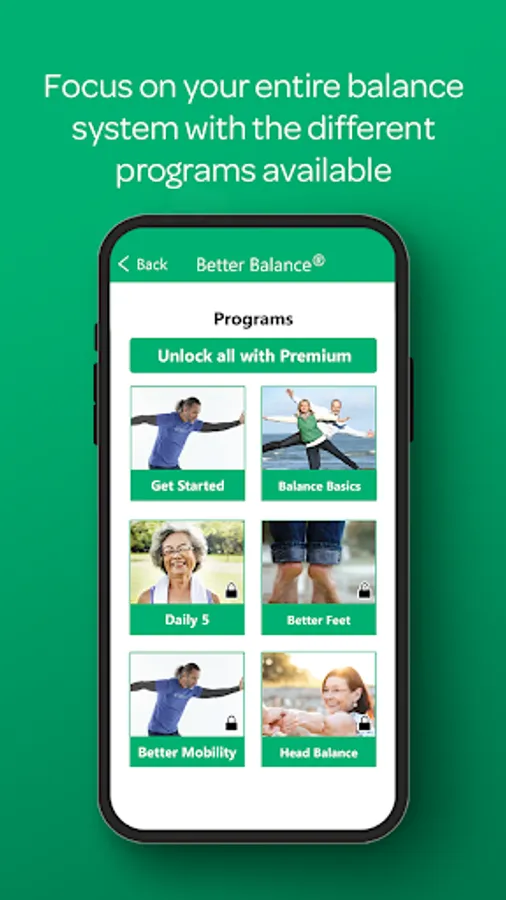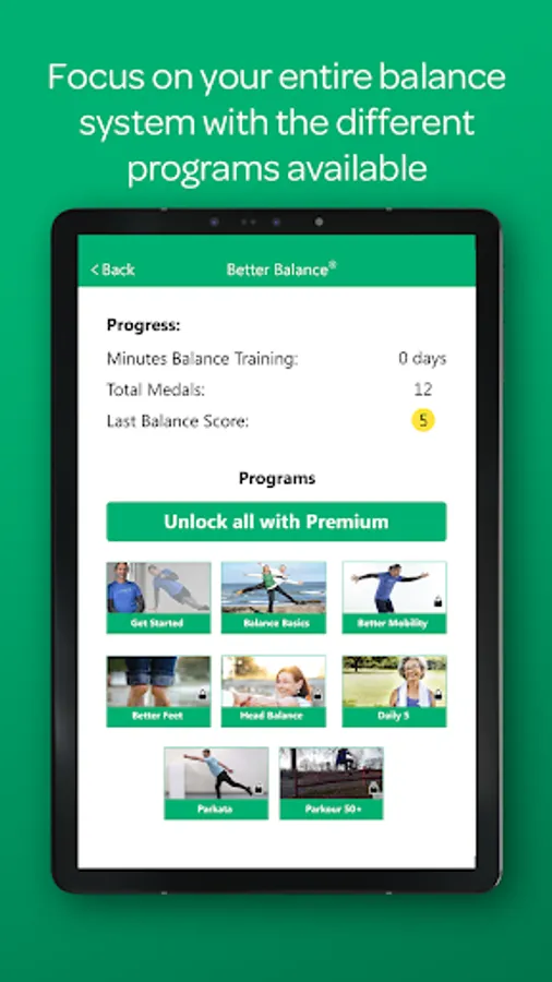 Upgrade to the Better Balance® Training premium to unlock the rest of the programs and keep your body moving the way it was designed. Learn techniques you can easily weave into your daily activities. The programs include workout variety, progress tracking and you collect medals after you learn a skill.¬