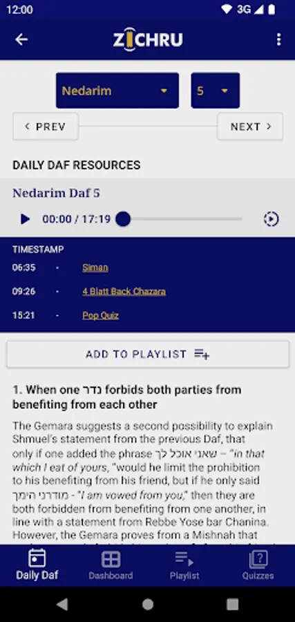 - Playlist feature to personalize review of multiple shiurim and quizzes from different masechtos