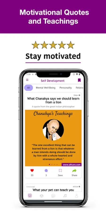 1. Self Development: Our Self Development feed is loved by users for its articles, podcasts and motivational quotes. This feed is created by psychology/ motivation experts and meditation teachers. This is content by experts on various dimensions of life such as motivation, productivity, education, confidence, success, mental well-being, personality, meditation, psychology, relationships among others. The discussion boards enable lively interaction between users on various topics. It also has real-life stories of people who’ve overcome stress, anxiety and depression to motivate us and become incredibly confident and successful.