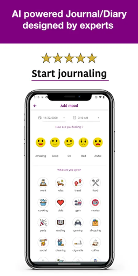 2. Diary: This is an advanced mood tracker cum journal. It has an incredible interface loved by youngsters and adults, and can be maintained without typing. This helps you keep track of your moods and thoughts. You can store an unlimited number of entries in this highly secure diary.