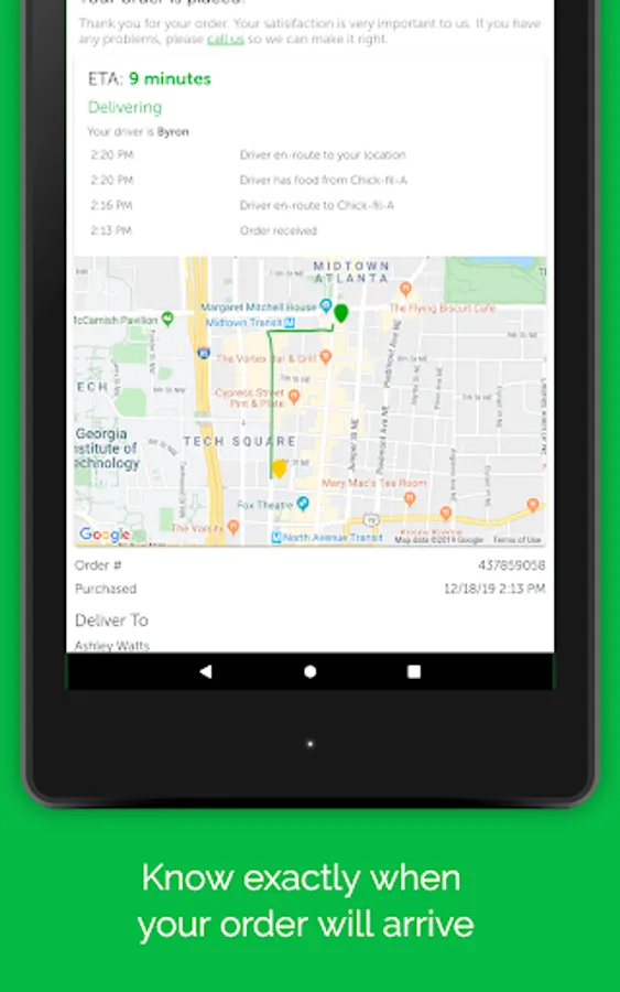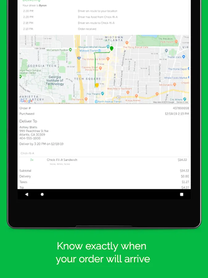 Order from national chain restaurants like California Pizza Kitchen, Moe’s, Chick-Fil-A, Subway, Charley’s Philly Steaks, Joe’s on Juniper, Firehouse Subs, Dairy Queen, Great American Cookies, Jersey Mike’s, Planet Smoothie. Local food more your thing? Lots of options like Six Feet Under, Spoon, Varuni Napoli, The Highlander to The Flying Biscuit. Just enter your address for delivery to see all of the options near you.