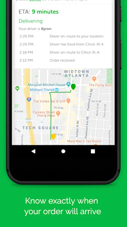 Track your orders through our live tracking system. Real time tracking allows you to stay in the know of when your food will arrive. Our tracker accounts for things like weather and ticket times at restaurants.