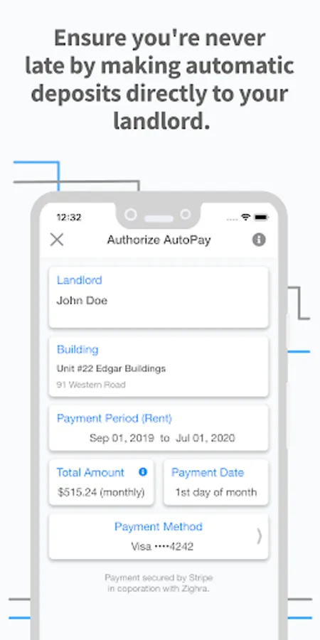 Auto Payment feature which allows automatic withdraws to your landlord.