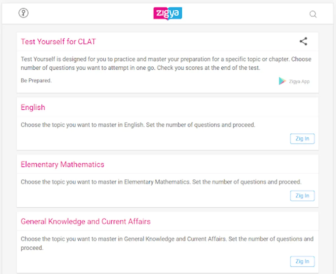 Test Yourself enables to check your preparation levels for any topic you feel you are confident on.