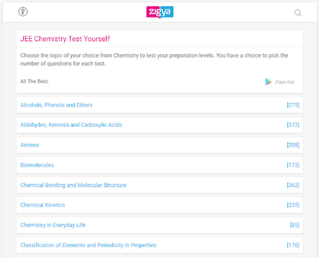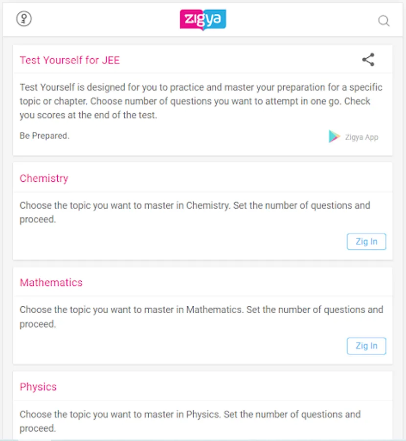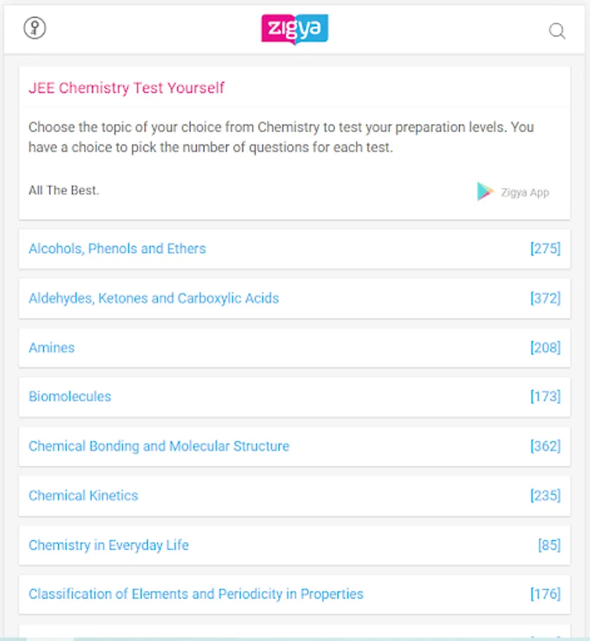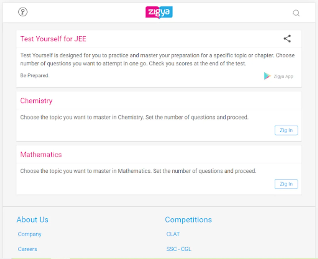 Test Yourself enables to check your preparation levels for any topic you feel you are confident on.