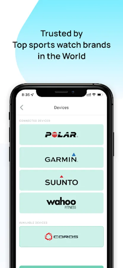 - Connect your Garmin, Polar, Suunto, Wahoo or Coros watch.