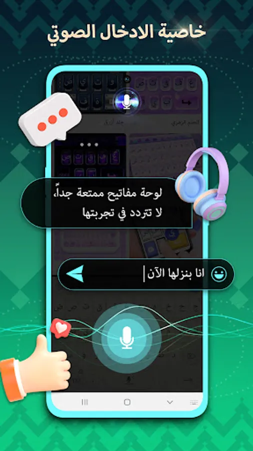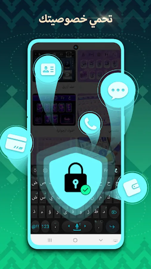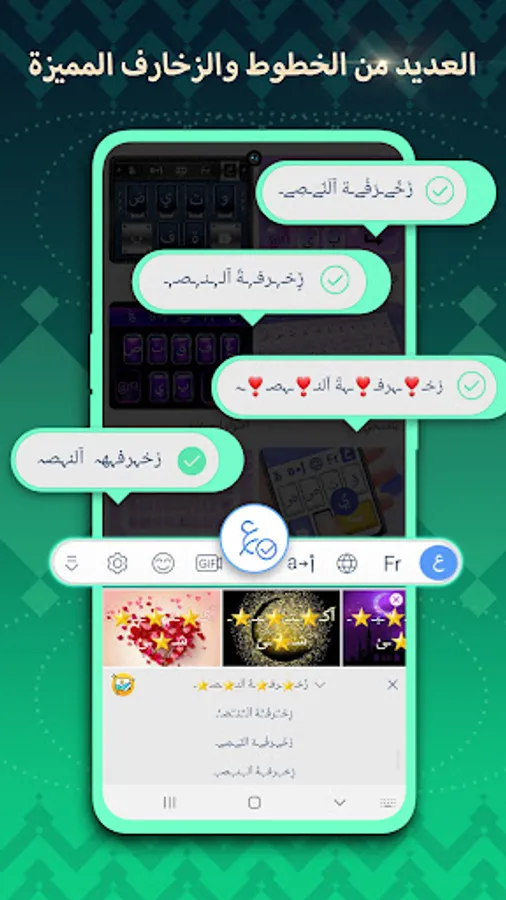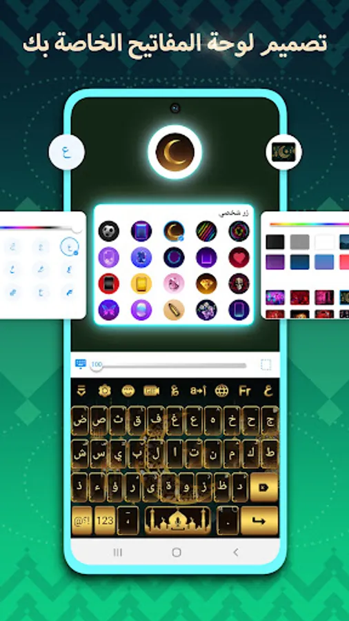 The keyboard includes hundreds of types of backgrounds, the most important of which are "landscapes, fashion, romance, occasions, cute, anime and celebrities...". It also regulates the personal design feature that allows the user to control the shapes and colors of the keyboard buttons, as well as choose his picture 🌇 from the photo gallery on the phone.