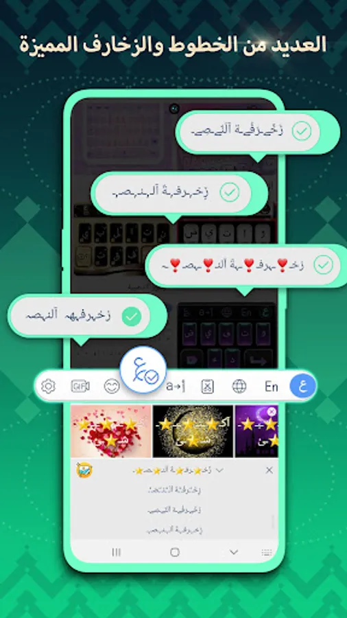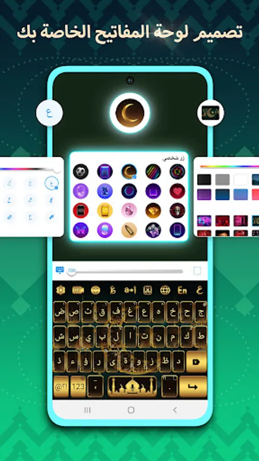 The keyboard includes hundreds of types of backgrounds, the most important of which are "landscapes, fashion, romance, occasions, cute, anime and celebrities...". It also regulates the personal design feature that allows the user to control the shapes and colors of the keyboard buttons, as well as choose his picture 🌇 from the photo gallery on the phone.