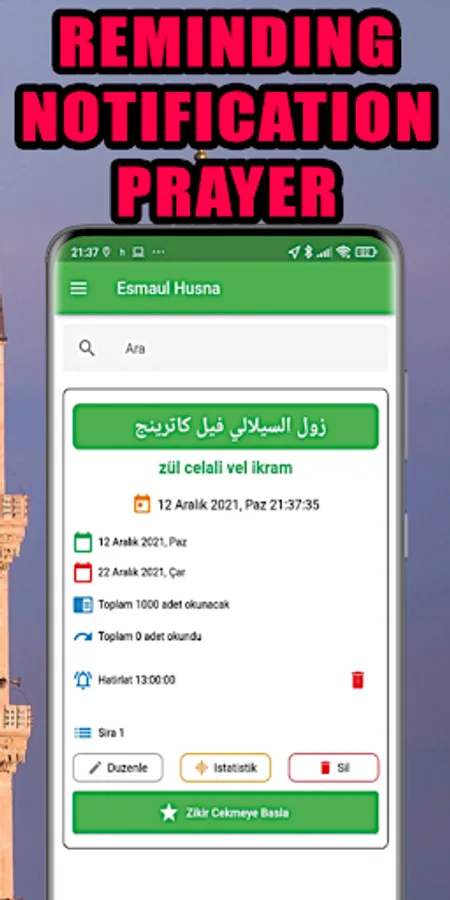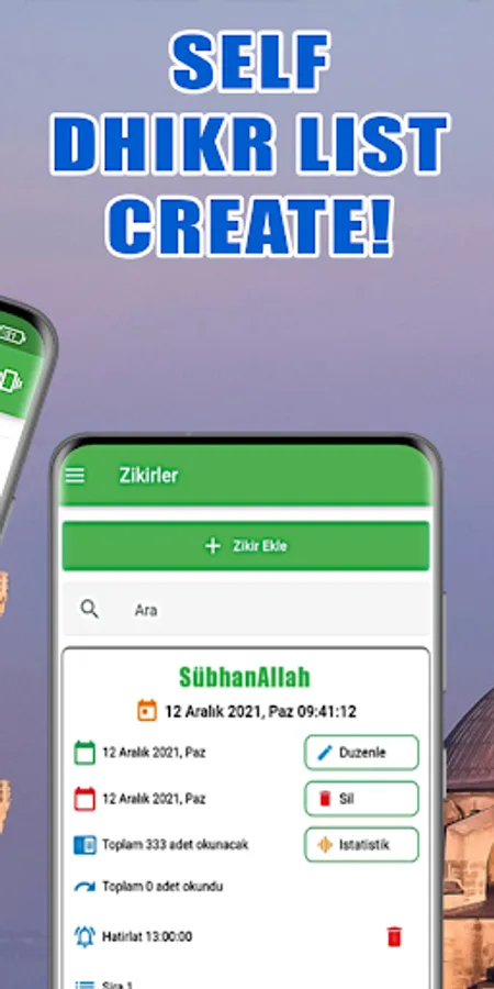 • You can record the dhikrs you have determined, add dates, create notifications. In this way, you can create your own dhikr list.