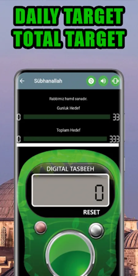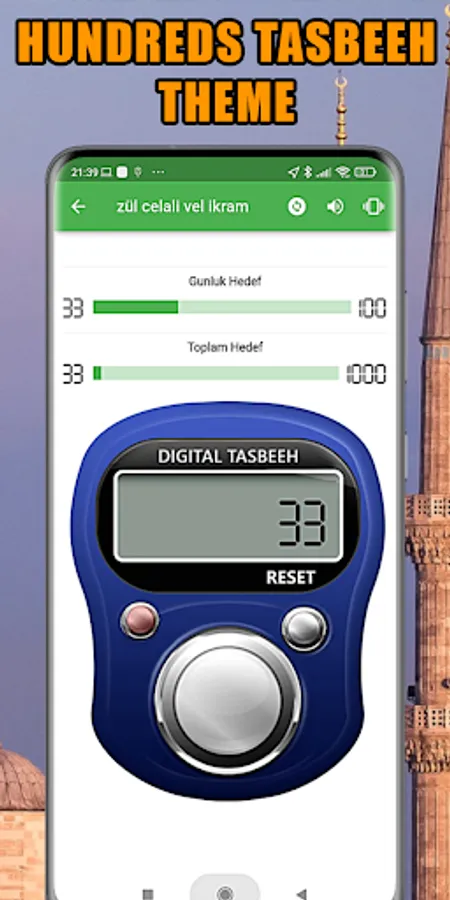 It is quite easy to reset the dhikrs you have taken. When you press the reset button, you will find a warning and if you approve, your dhikr will be reset. With the sound notification system, you can chant your dhikr without looking at the screen.