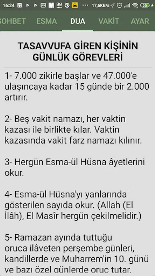 * Daily Esma-ul Husna Dhikrs with their customs, dhikrs according to the calamities of the soul.
