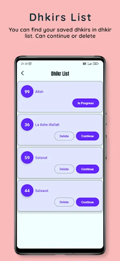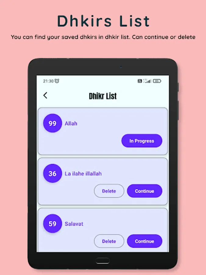 You can continue your saved tesbihat when do you want to continue with this smart dhkir application. You can count names of ALLAH, Salaah Tesbihat and Duas. This smart tasbih application will record your all dhkirs and prays.