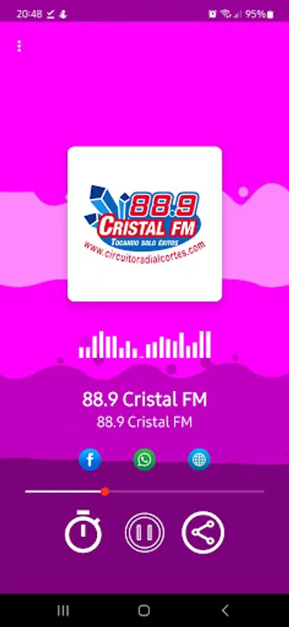 That is 88.9 Cristal FM, a station musically programmed to give meaning to your senses because we are the musical monument that enjoys a privileged position on the dial on the boulevard where frequencies parade.