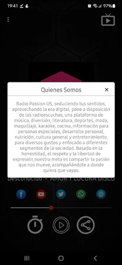 Radio Passion, aprovechando la era digital, pone a disposición de los radioescuchas, una plataforma de música, diversión, literatura, cultura general y entretenimiento, para diversos gustos y enfocado a diferentes segmentos de la sociedad. Basado en la honestidad, el respeto y la libertad de expresión,nuestra meta es compartir la pasión que nos mueve, acompañándote a donde quiera que vayas. Ricardo Gómez, Paula Guzmán y los 28 locutores que integran el equipo, te invitan a ser parte de esta gran familia radial, “Radio Passion” ... en donde la estrella…ERES TÚ.