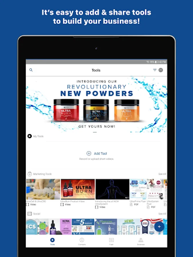 Tools: It has never been easier to share information about your products and opportunity via SMS text, email, or social media. Simply choose tools specifically designed to promote your business and share them with a contact. You'll receive a notification when contacts view a tool so you know exactly when to follow up! No data connection? No problem! Simply download tools such as videos in the app beforehand for offline playback.