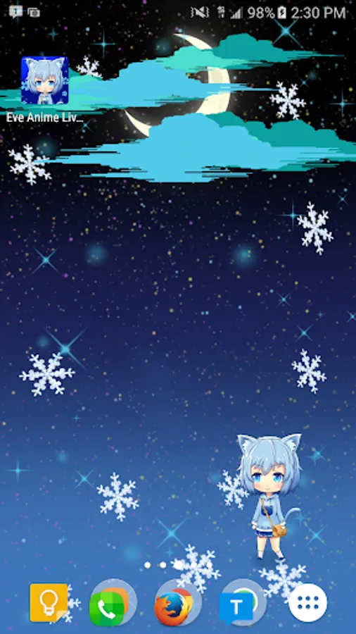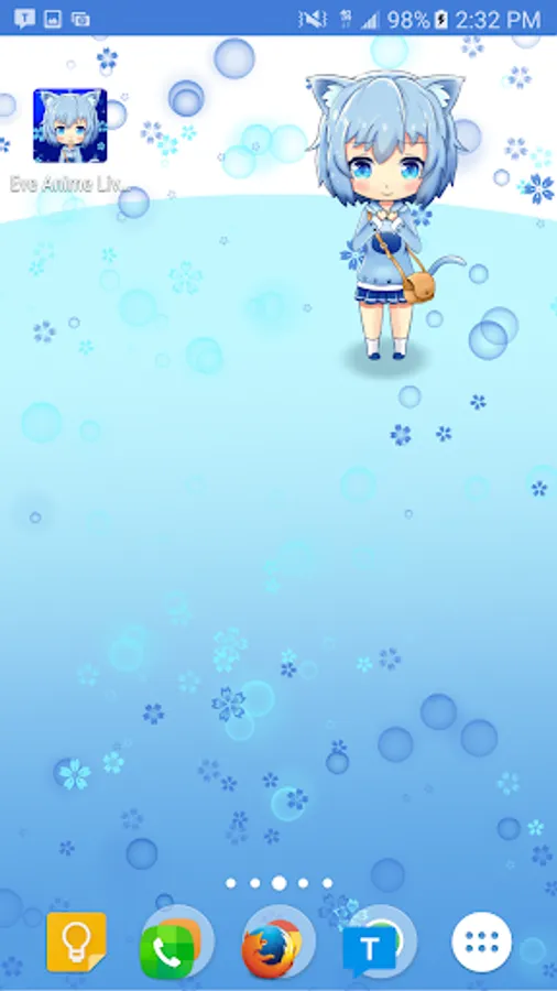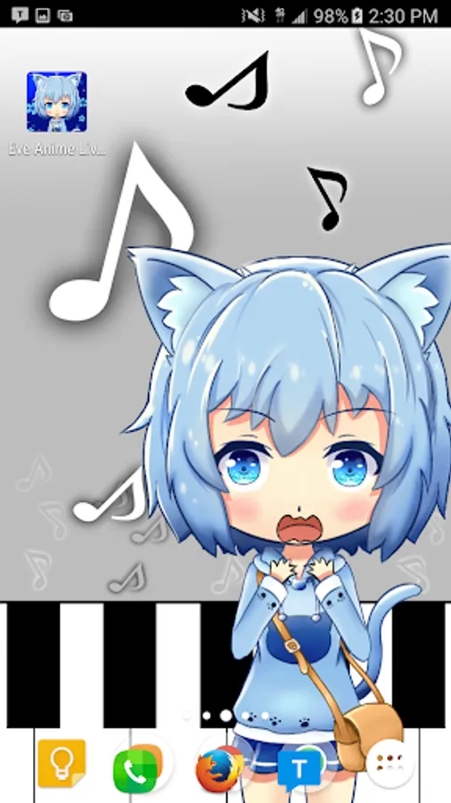 Notice: this is intended as a trial version of the main app. If you like the app, you should get a refund from Play Store (within 2 hrs) and buy the character in the main app: https://play.google.com/store/apps/details?id=com.zillherite.e1.livelyanimelive2dwallpaper