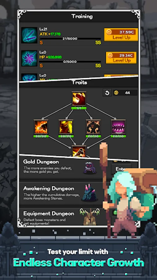 Hack and Slash Survival 2D Pixel Idle Role Playing Game! Hunt numerous monsters and upgrade your character. Get started now!