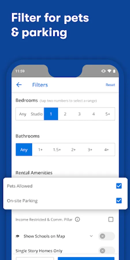 • Filter for-rent listings by size and amenities, including in-unit laundry, on-site parking and pet-friendly homes.