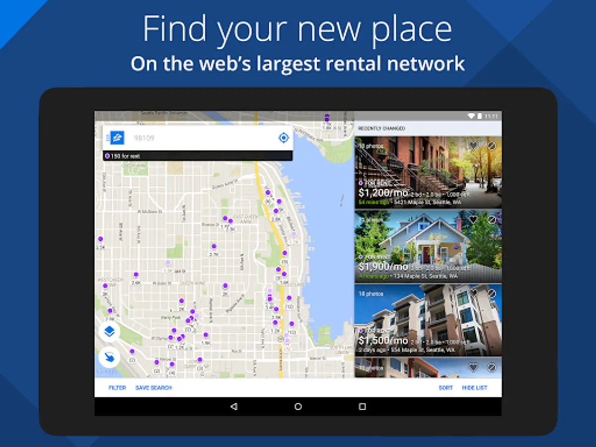 • View for-rent apartments, houses, condos and townhomes in a list or on a map.