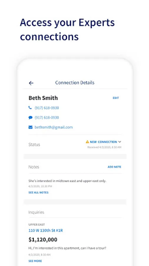The Agent Tools app allows NYC agents to manage their StreetEasy listings on the go. It also gives Experts agents access to their connections.