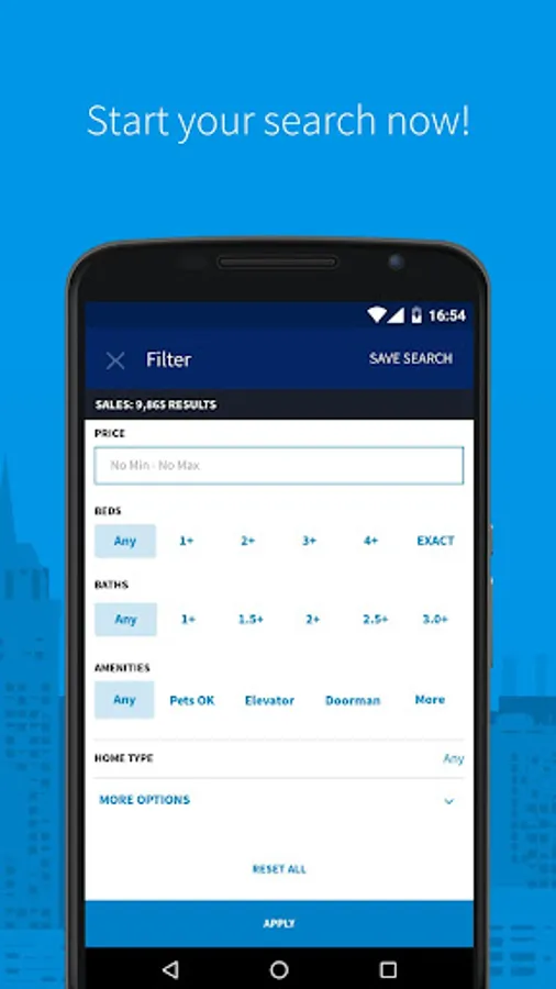 • Filter by building and apartment amenities, including doorman, elevator, pets allowed and washer/dryer.