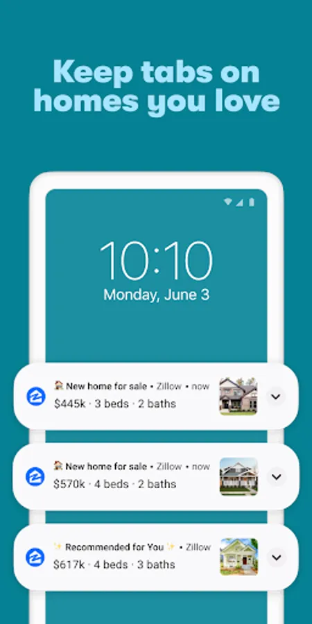 • Push notifications to let you know when houses come to market, have a sale pending, or drop in price