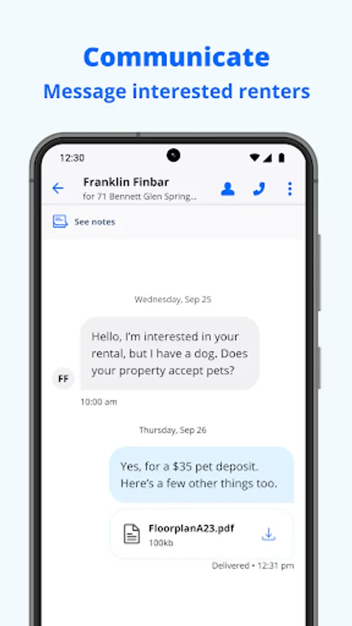 • Receive notifications as soon as a renter asks about your property and message them in the app