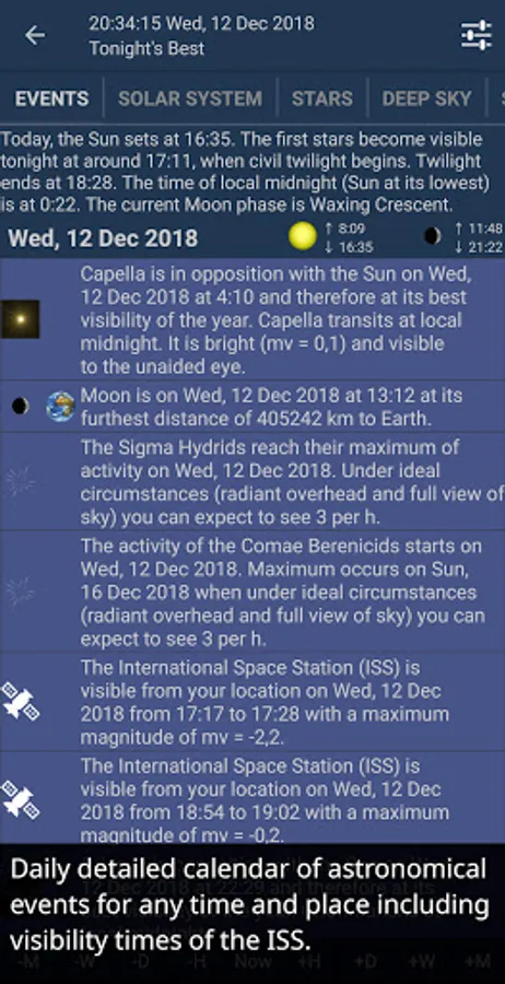 - Push celestial events to your phone's calendar and set a reminder alarm