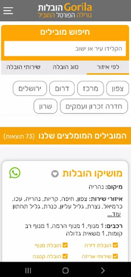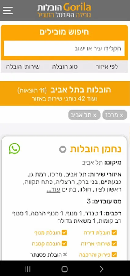 On the Gorilla Havolot portal you will find a huge selection of carriers throughout the country: