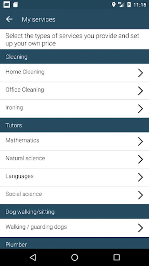 - Set up a working radius (how many km around you, you are available to go and provide services)
