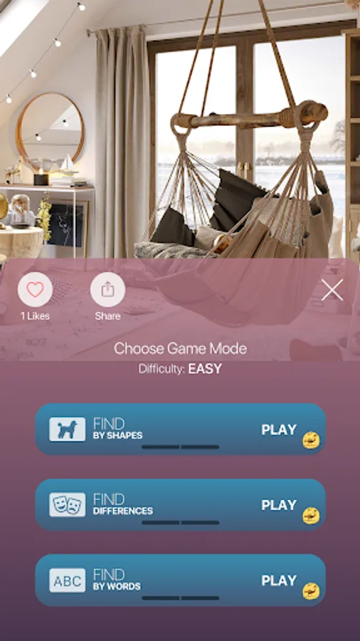 Welcome to the relaxing hidden objects game. Let yourself relax, get out of your everyday routine, immerse yourself in photorealistic unique interiors, and improve your attention and observation skills.