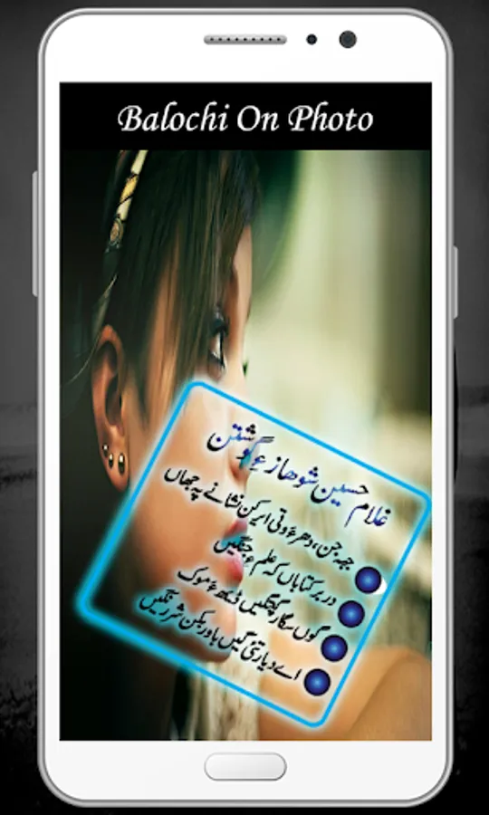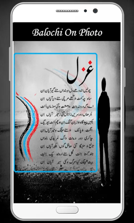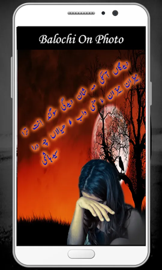 On image writing app, write on pics app you can write anything like write balochi poetry, you can write poem in balochi language on any picture you like. So write baochi poetry on pictures having balochi culture in background. You can write names on photos with stylish character writing in balochi language. You can write poem, write poetry on photos, write name on image on photo writing app. Image writing app increase worth of your photos as well of worth of your text meanwhile increase worth of Baluchistan culture.