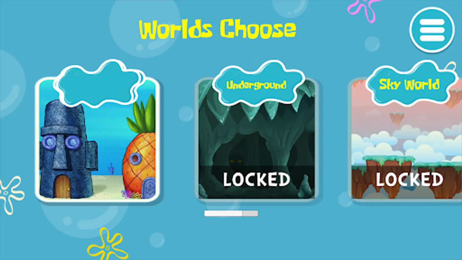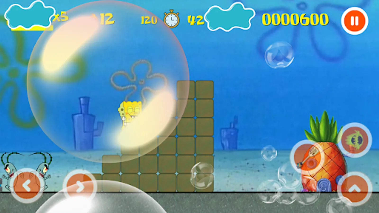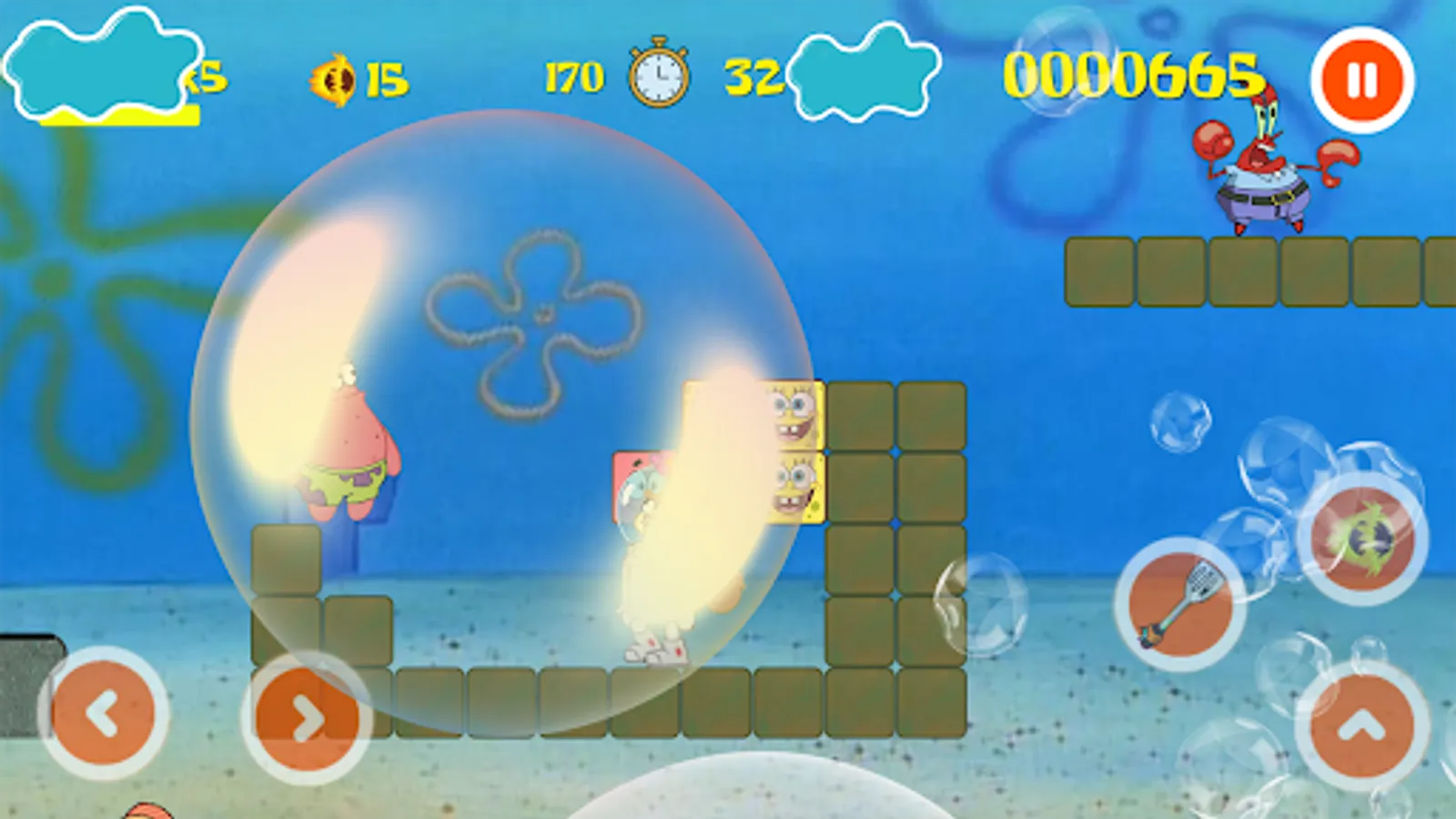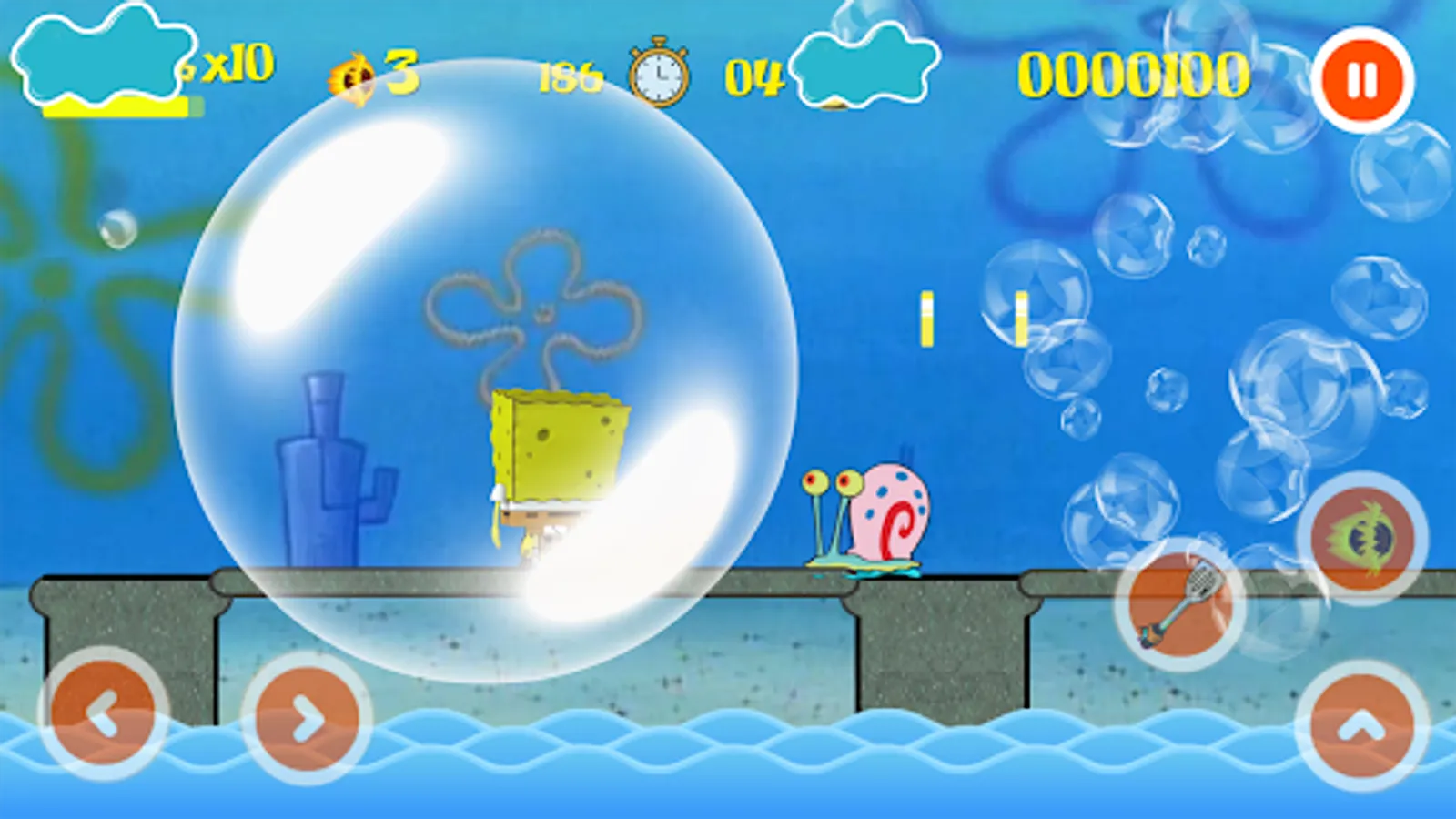 Super Sponge Adventure for moving Bob click on right or left on the control pad! press Jump-button to make Super Sponge jumping adventures