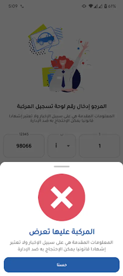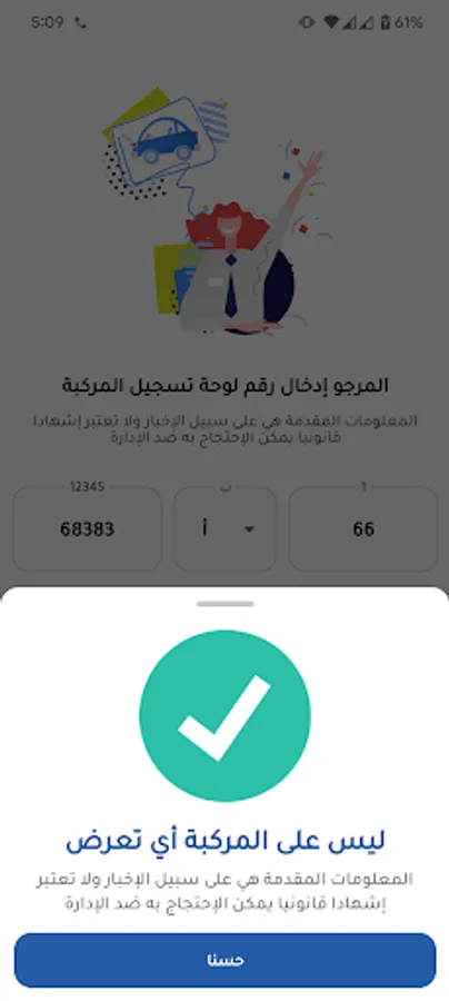 يمكن للمستخدمين استخدام التطبيق للحصول على معلومات حول حالة التعرض على سياراتهم أو شاحناتهم، وذلك عن طريق إدخال رقم لوحة المركبة. ستظهر بعد ذلك للمستخدمين قائمة بجميع التعرضات المسجلة على المركبة المحددة، بما في ذلك التعرضات الناجمة عن الحوادث والتعرضات الأخرى.