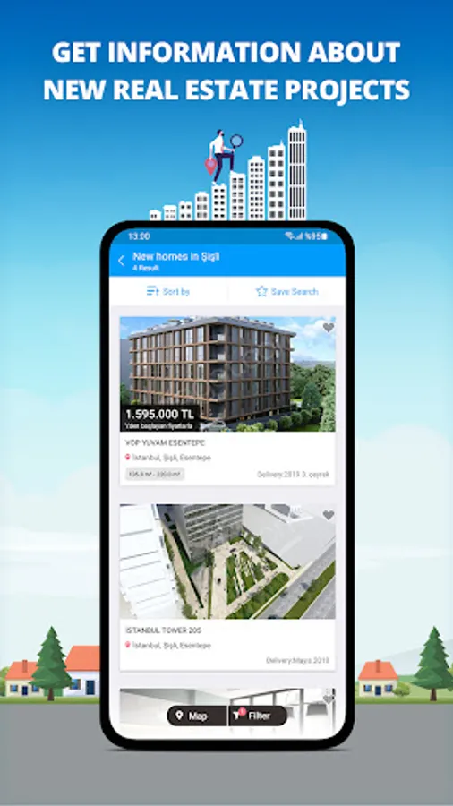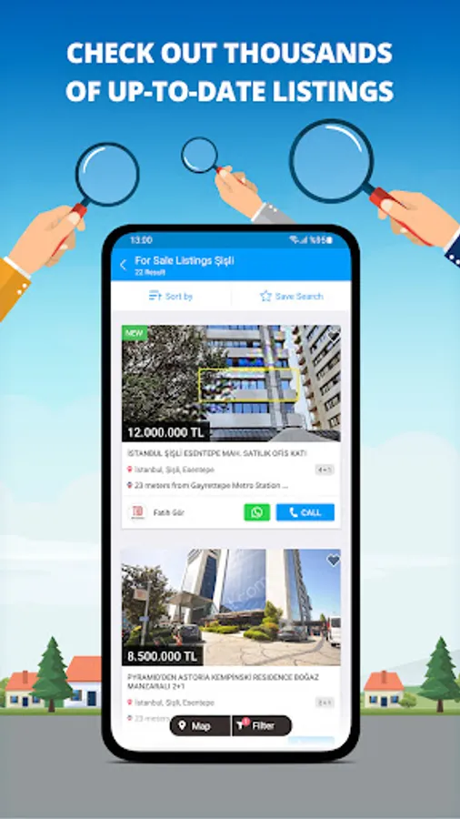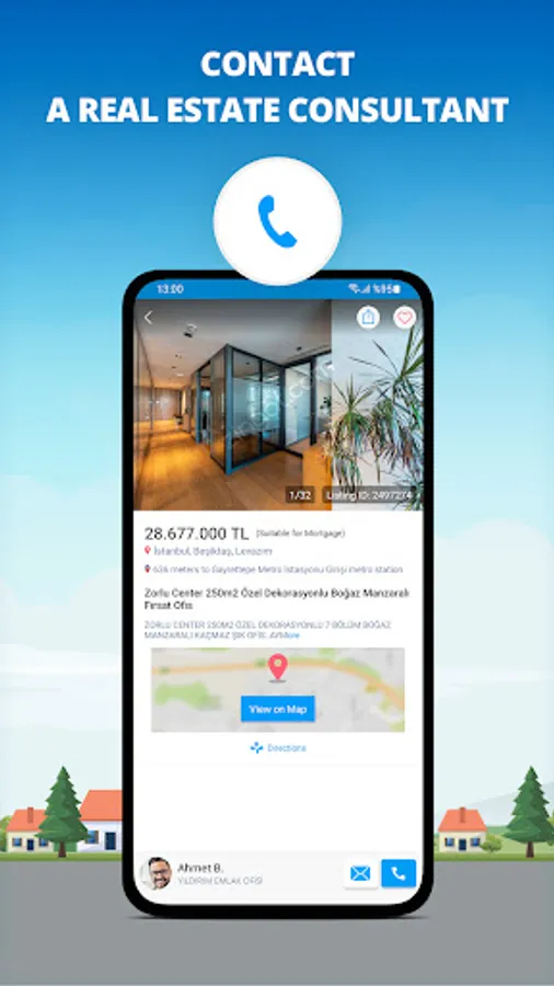 You can easily access up-to-date real estates for sale or rent apartments, stores, residences, detached houses, villas, lands and much more through our application.