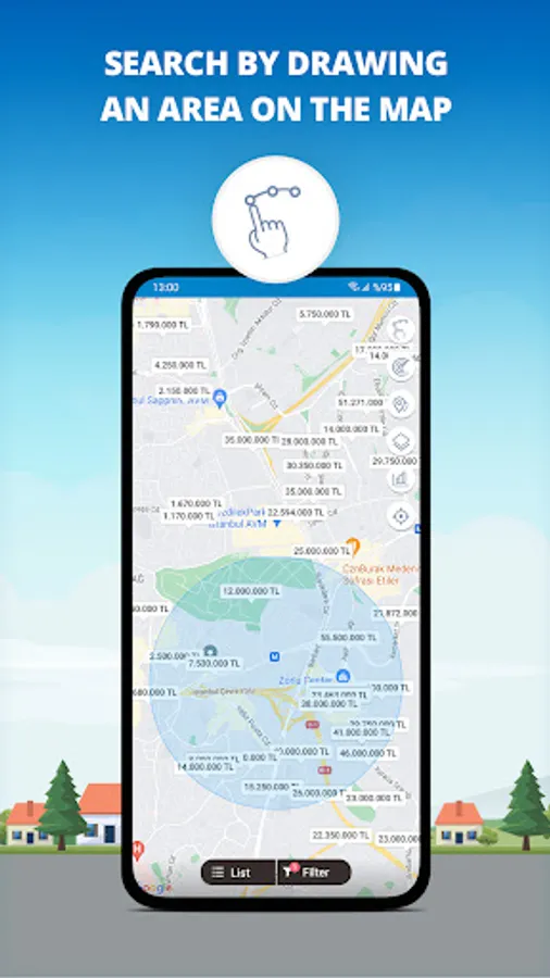 2) You can search for real estate by drawing on the map, and you can reach the closest listings to your location with a single click.