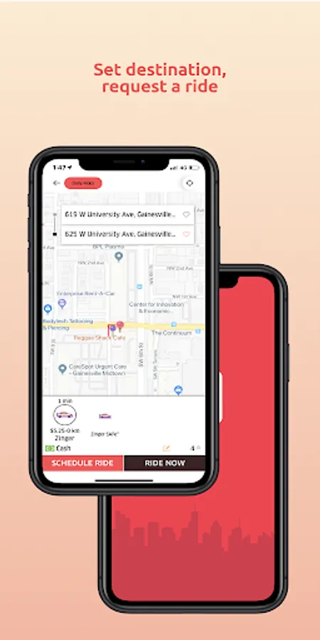 Just tap the button to order a ride, get picked up by a nearby driver, and enjoy a low-cost ride to your destination.
