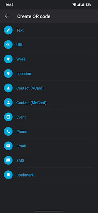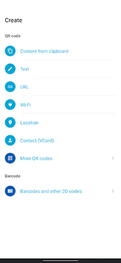 You can also create QR and Barcode using our app. We support all standard barcodes. You can also create a wide array of QR codes like Name, Contact, Wi-Fi, Link, Location, Event, Phone, Bookmark etc. You can also request any additional type via email and we will add it.