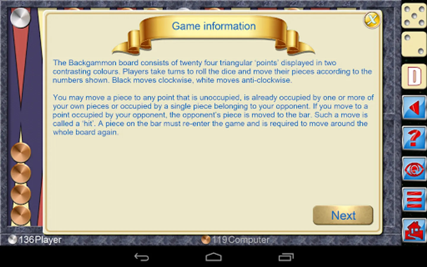 * Understands all the official rules of Backgammon, particularly those concerned with bearing off.