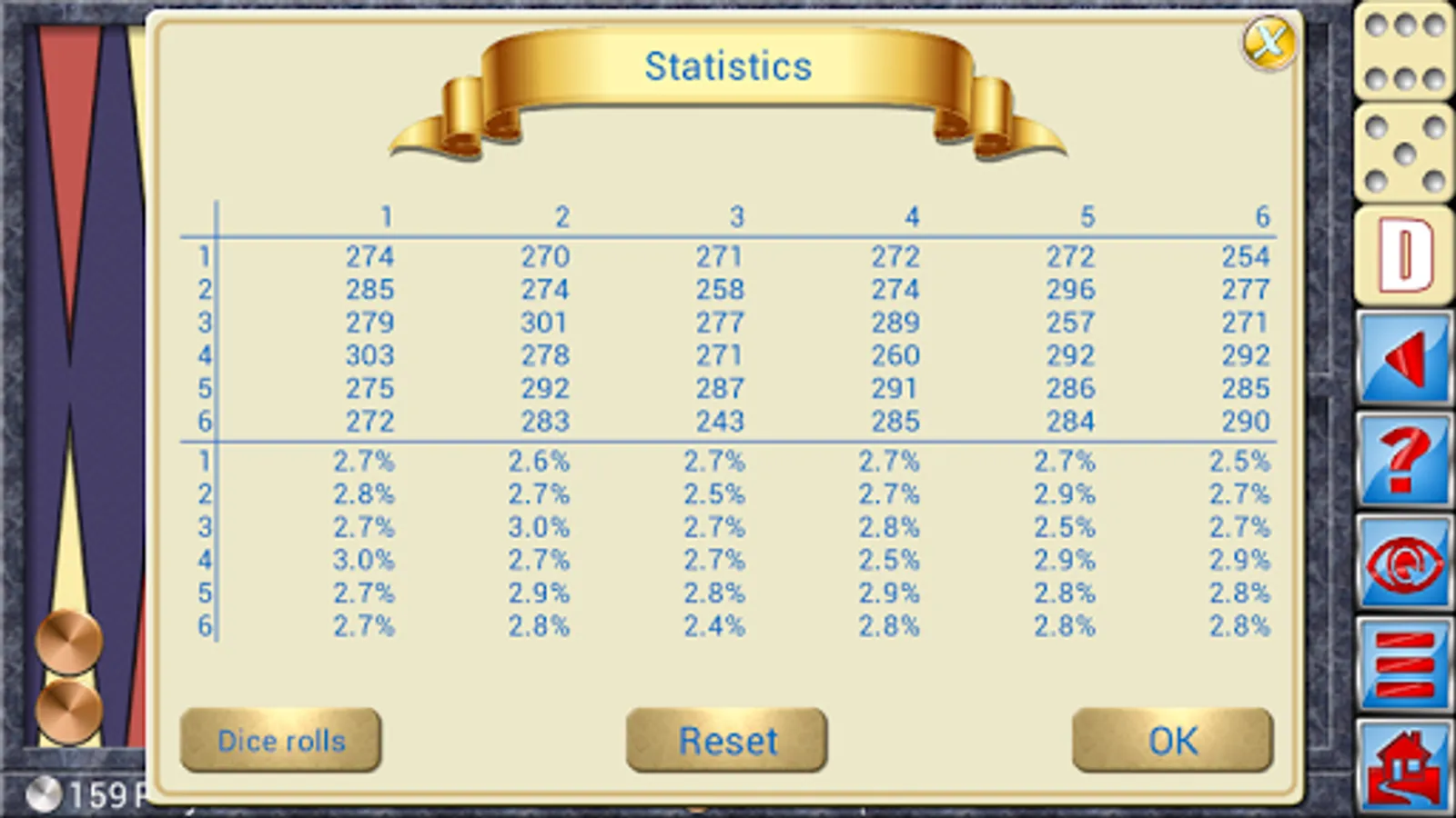 * Dice statistics - record all dice rolls in your games.