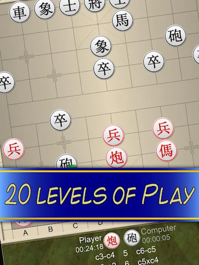Never played before, not a problem. The game helps you at every step with hints, legal move display, piece move information, game information and 20 levels of play enabling you to learn chinese chess at your own pace.