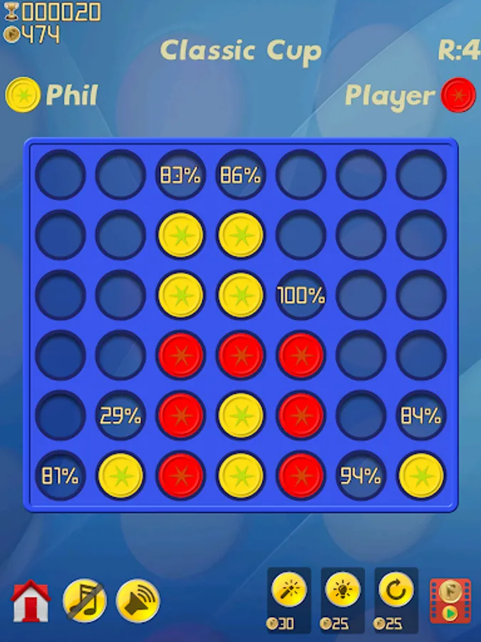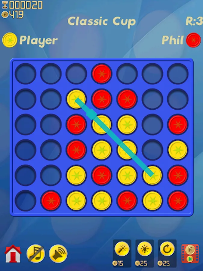 Your 4 In A Line Adventure comprises two modes, the traditional four in a row mode and a new tournament mode.