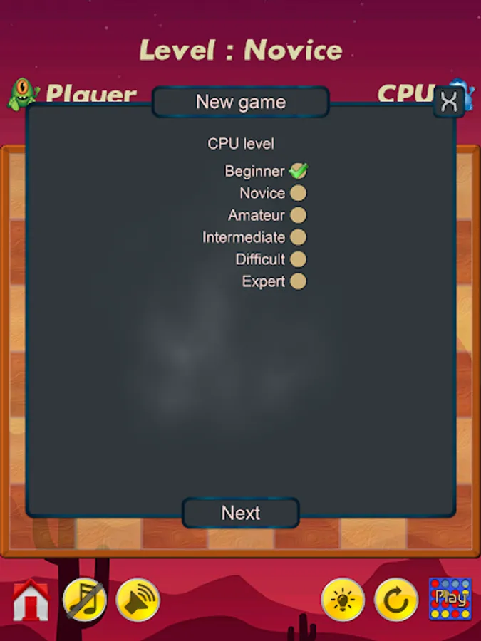 In the traditional connect 4 mode you choose from one of 6 levels of AI ranging from beginner to expert. Whilst beginner level is fairly easy to beat, the expert level represents a step change in AI and probably plays the strongest game of 4 In A Line in the world!