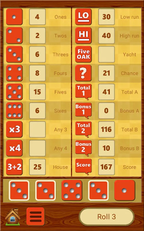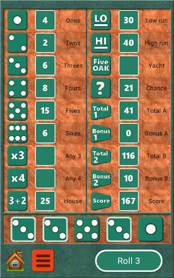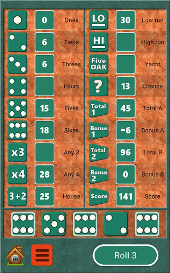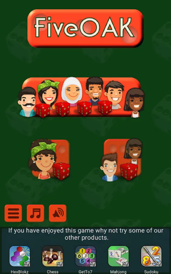 FiveOAK is an addictive yatzy dice game played with a standard set of five dice combining the best in luck and skill to entertain for many hours.